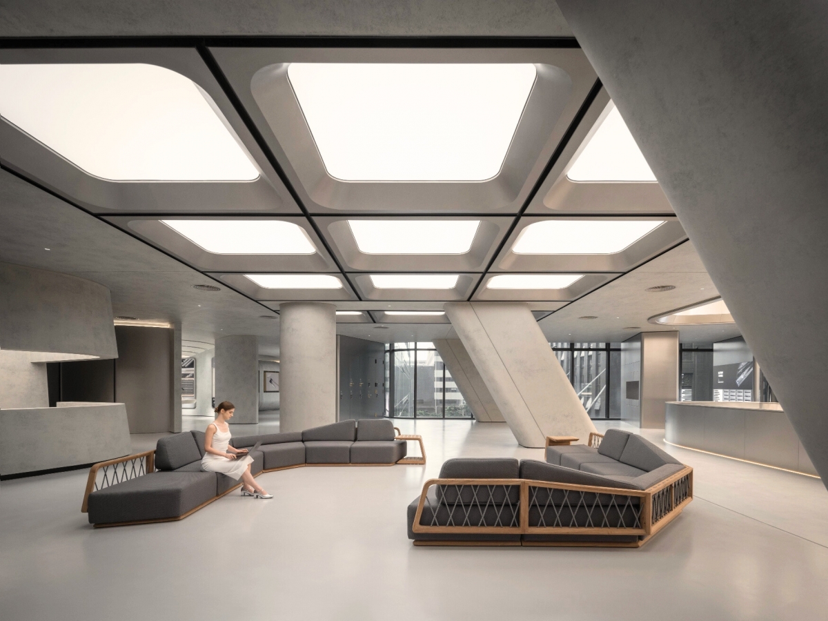 Thiết kế này không chỉ mang tính thẩm mỹ mà còn có tính ứng dụng cao. Khu vực văn phòng, phòng họp, không gian trưng bày đều tận dụng tối đa ánh sáng tự nhiên, giảm chi phí năng lượng và tạo môi trường làm việc thân thiện với sức khỏe. Điều này chứng tỏ Higold không chỉ chú trọng ngoại hình, mà còn quan tâm đến trải nghiệm và hiệu quả sử dụng thực tế – yếu tố quyết định cho các công trình nội thất hiện đại.