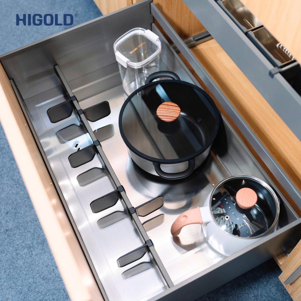 Nếu bát đĩa cần sự gọn gàng, thì xoong nồi lại cần khả năng chịu tải và tiếp cận thuận tiện. Đây là nhóm vật dụng chiếm nhiều diện tích nhất trong tủ bếp dưới, đồng thời thường gây khó khăn khi lấy ra nếu xếp chồng lên nhau. Nhiều gia đình có thói quen đặt nồi lớn ở dưới cùng, chảo ở phía trên, nắp nồi chen vào khoảng trống còn lại. Cách sắp xếp này khiến mỗi lần lấy đồ đều mất thời gian và dễ va đập vào nhau.