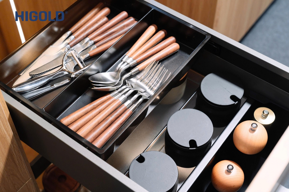 Sau khi tối ưu ba nhóm lưu trữ quan trọng nhất là bát đĩa, xoong nồi và gia vị, người dùng có thể cân nhắc mở rộng công năng với các giải pháp khác như thùng rác âm tủ, phụ kiện góc xoay hoặc khay chia ngăn dụng cụ bếp. Đây là những hạng mục giúp hoàn thiện trải nghiệm tổng thể và sẽ đặc biệt phù hợp khi cải tạo bếp hoặc thiết kế mới ngay từ đầu.