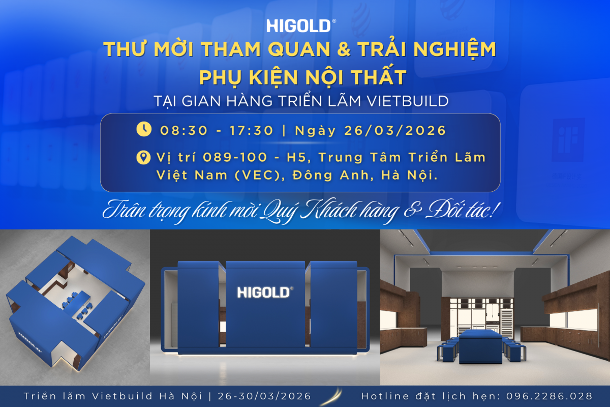 Trong khuôn khổ triển lãm Vietbuild Hà Nội 2026, Higold Việt Nam trân trọng kính mời Quý đối tác, khách hàng cùng các kiến trúc sư, nhà thiết kế và đơn vị thi công nội thất đến tham quan gian hàng của chúng tôi để trực tiếp trải nghiệm các giải pháp phụ kiện nội thất cao cấp. Sự hiện diện của Quý vị sẽ là niềm vinh hạnh lớn đối với Higold Việt Nam, đồng thời mở ra cơ hội giao lưu, trao đổi chuyên môn và cập nhật những xu hướng phụ kiện nội thất hiện đại đang được ứng dụng trong các công trình bếp, tủ áo và không gian lưu trữ cao cấp.
